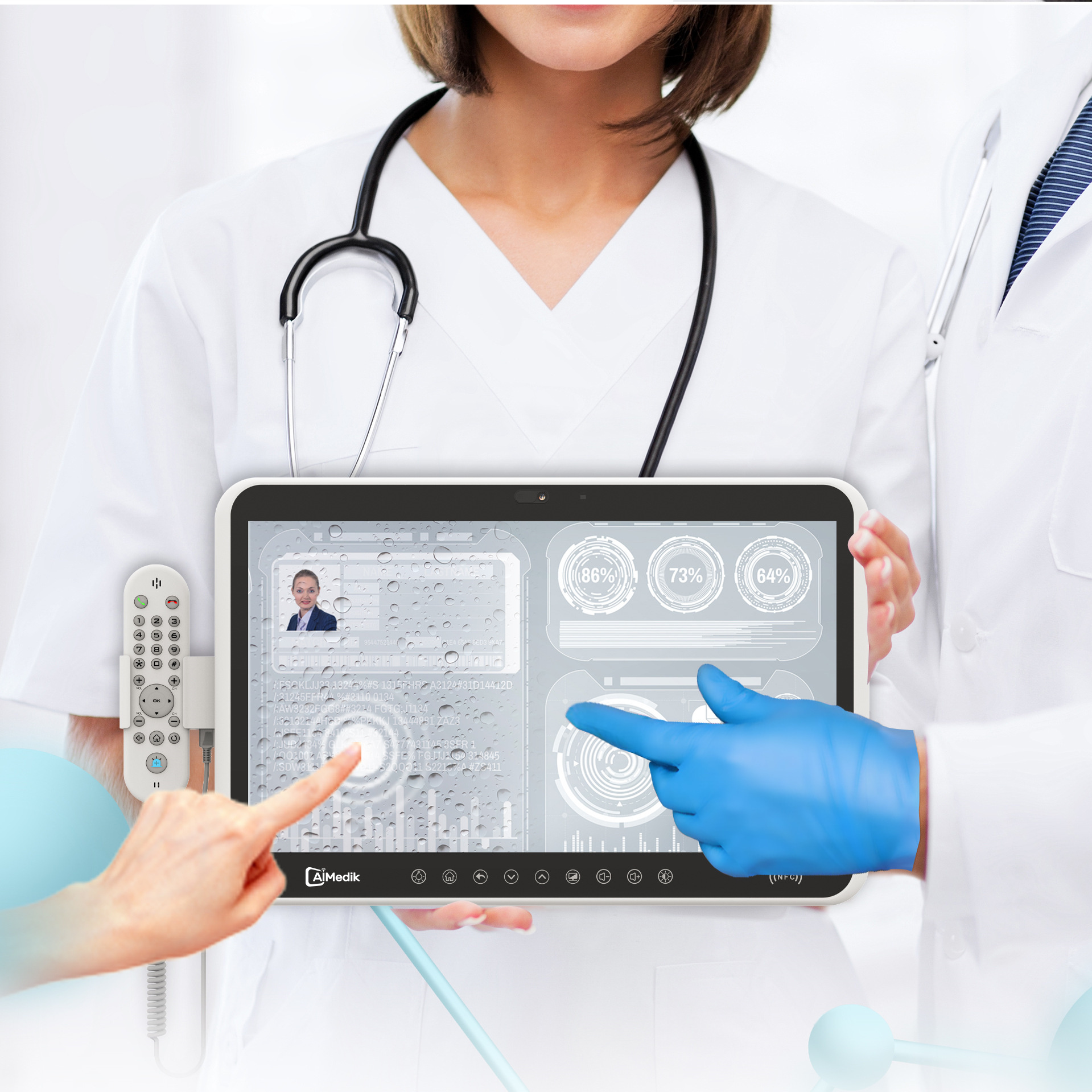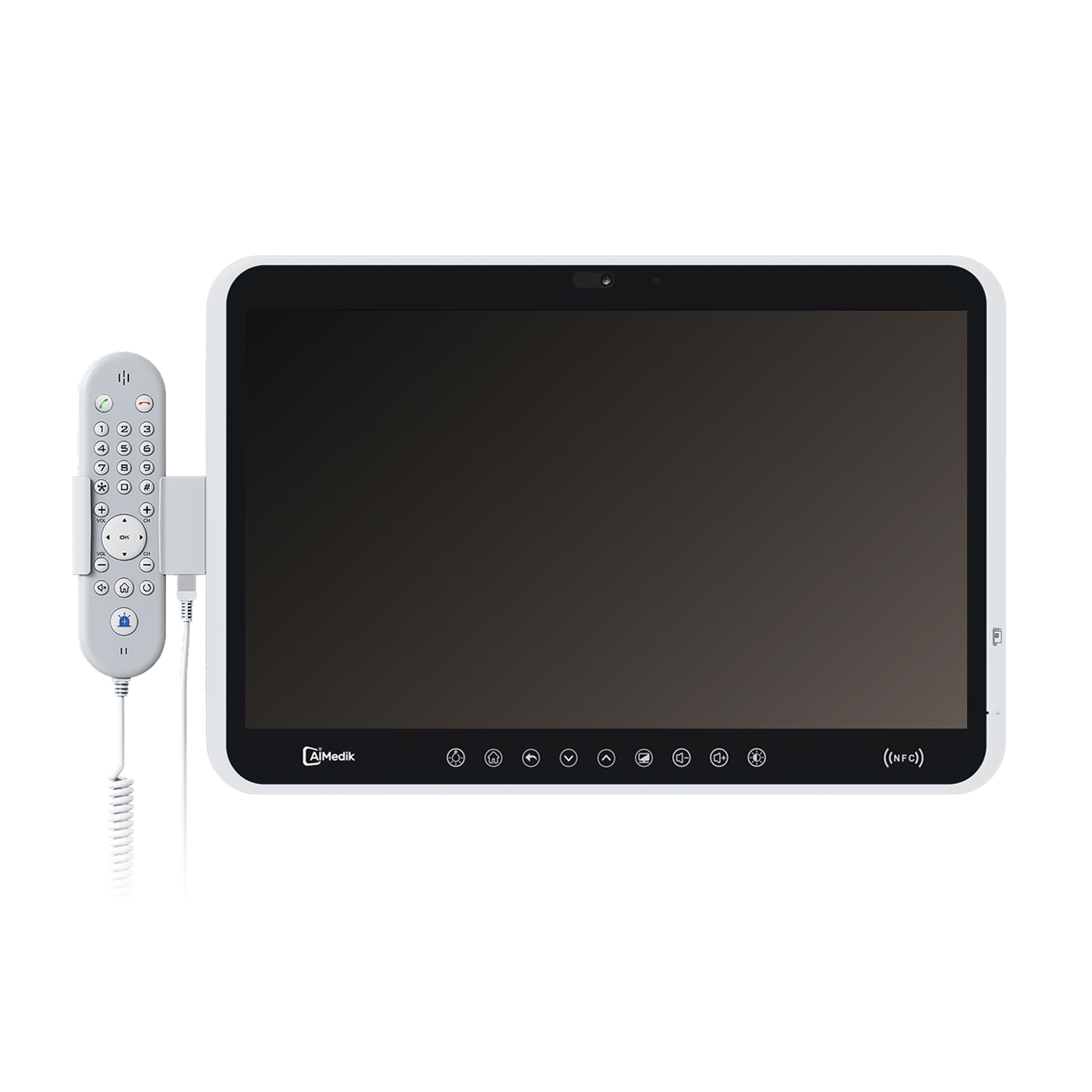 The bedside infotainment terminal is designed for the hospital and clinical environment. Considering its special usage environment, the terminal is equipped with an IPS LCD panel, a special 10-point capacitive touchscreen with anti-bacterial, antivirus, anti-alcohol wipe, and supporting glove touch, anti-bacterial plastic housing, and healthcare-certified components.