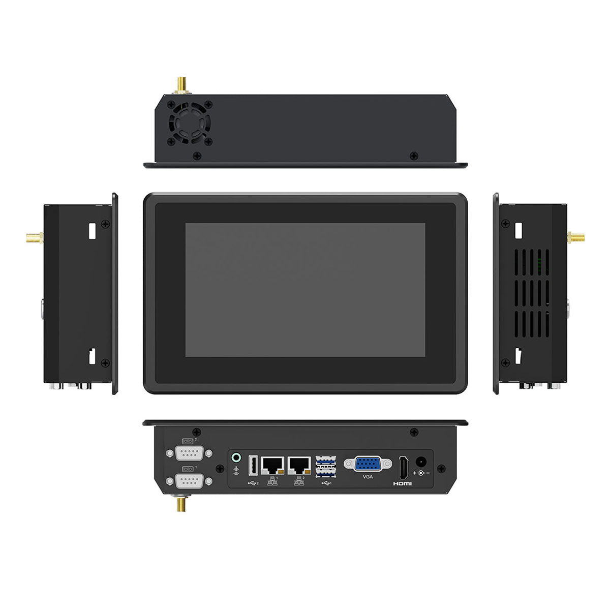 Panel PC is equipped with 3×USB host ports, 2xLAN 1000M port, 2xRS232/RS422/RS485 ports, VGA and HDMI output to connect seamlessly with your application.