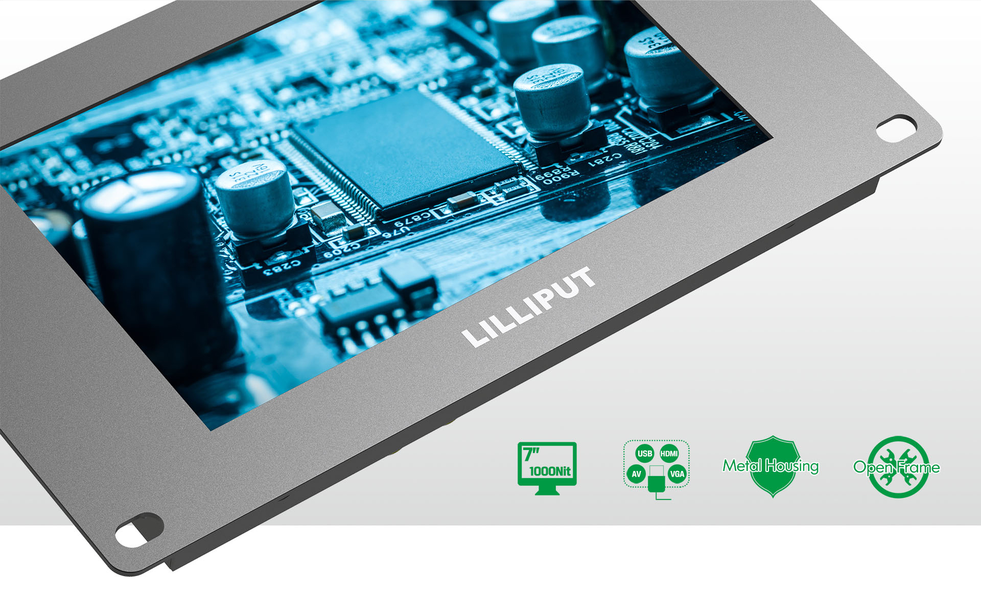supports rear mount (open frame) with integrated brackets. A metal housing design with slim and firm features making efficient integration into embedded or other professional display applications.